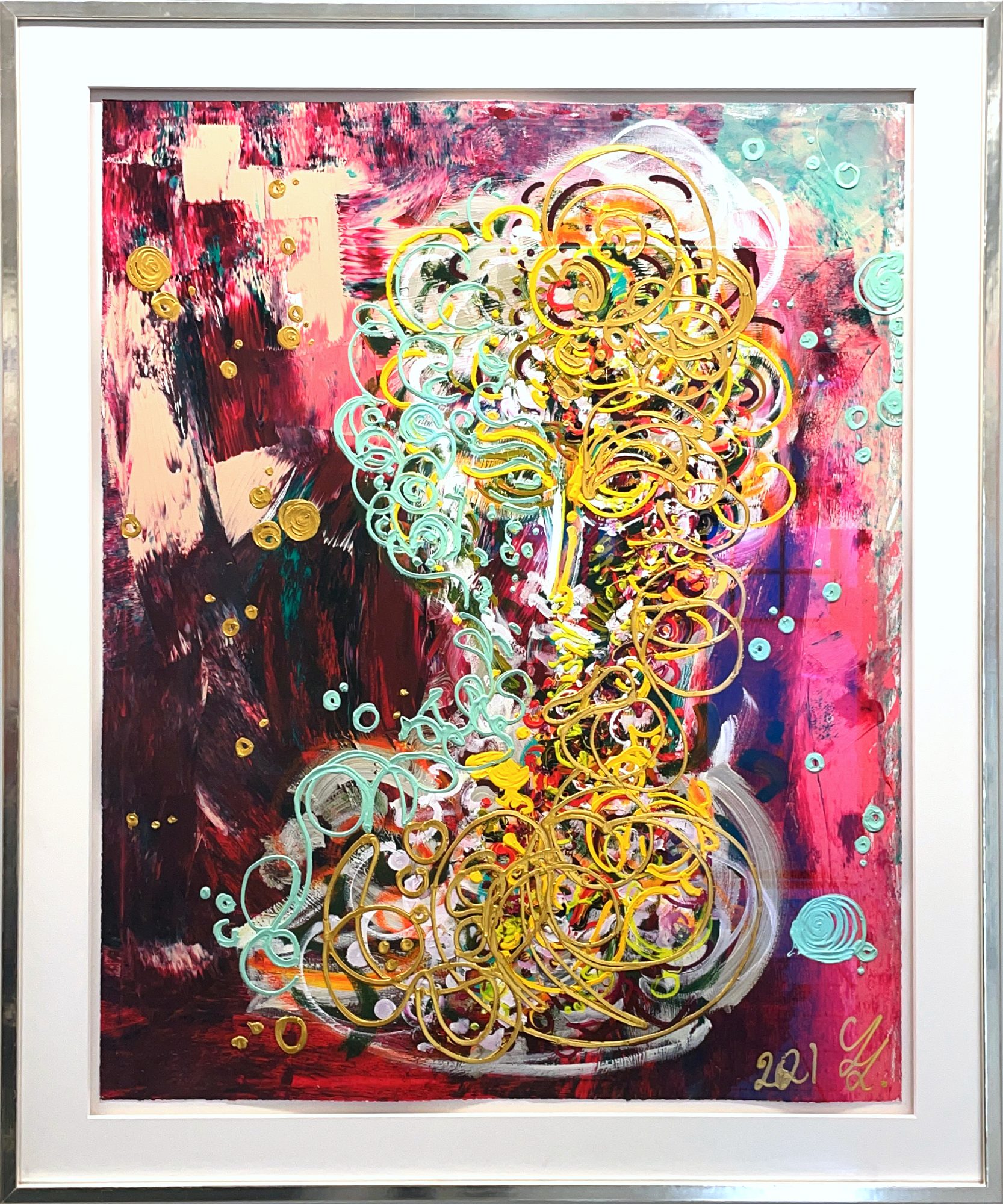 | Technik | Pigmentdruck auf Büttenpapier, pastös von Hand übermalt mit Acrylfarbe |