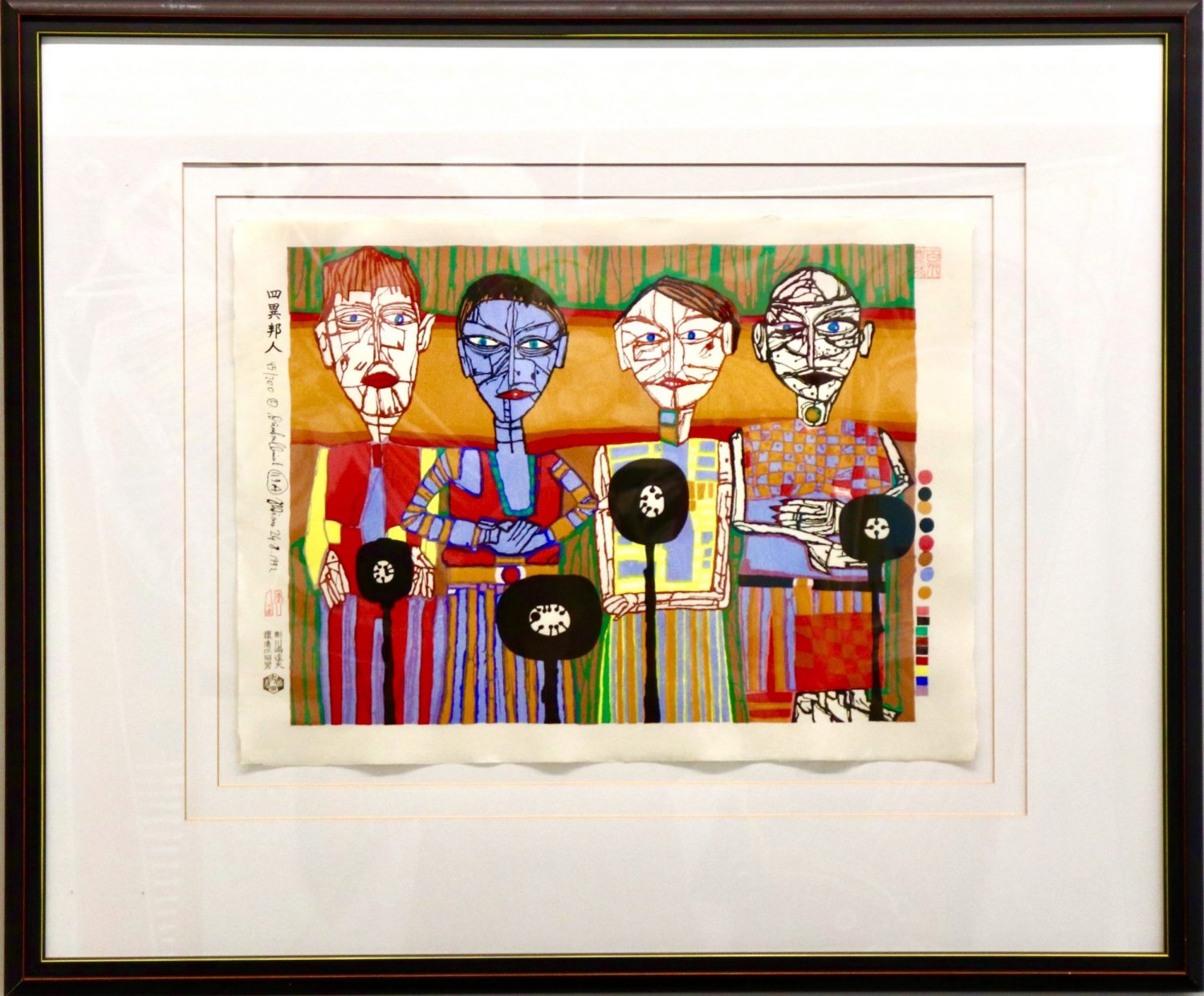 Technik Japanischer Farbholzschnitt in 17 Farben.