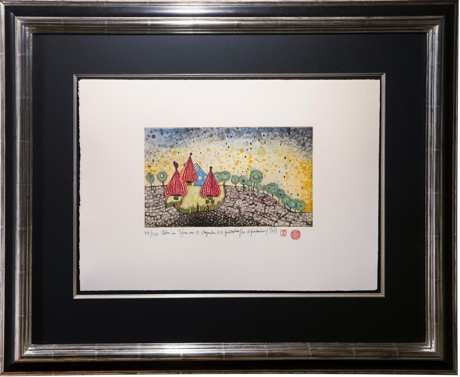 | Rahmung | Hochwertige blattvergoldete Rahmung mit entspiegeltem Museumsglas. |
